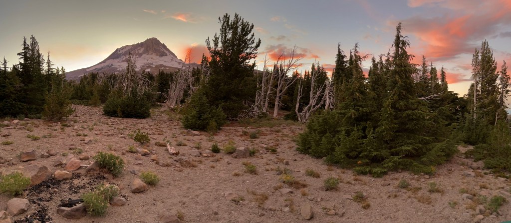 The first night on the mountain was awesome after a tough, but satisfying dance with nature all day on the Timberline Trail DAY 1. I always wanted to experience what I have seen in advertisements and that is pull back my tent flap and there before me is this outstanding view that just takes you aback. That is the experience I had on this morning.