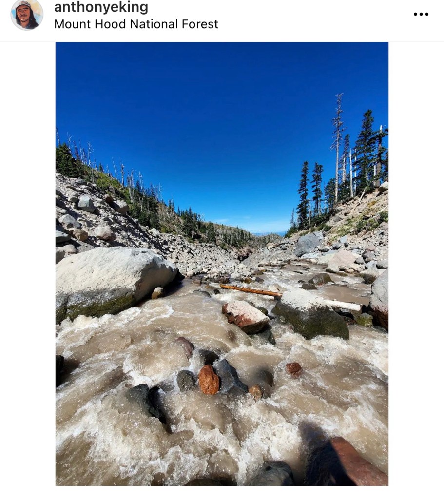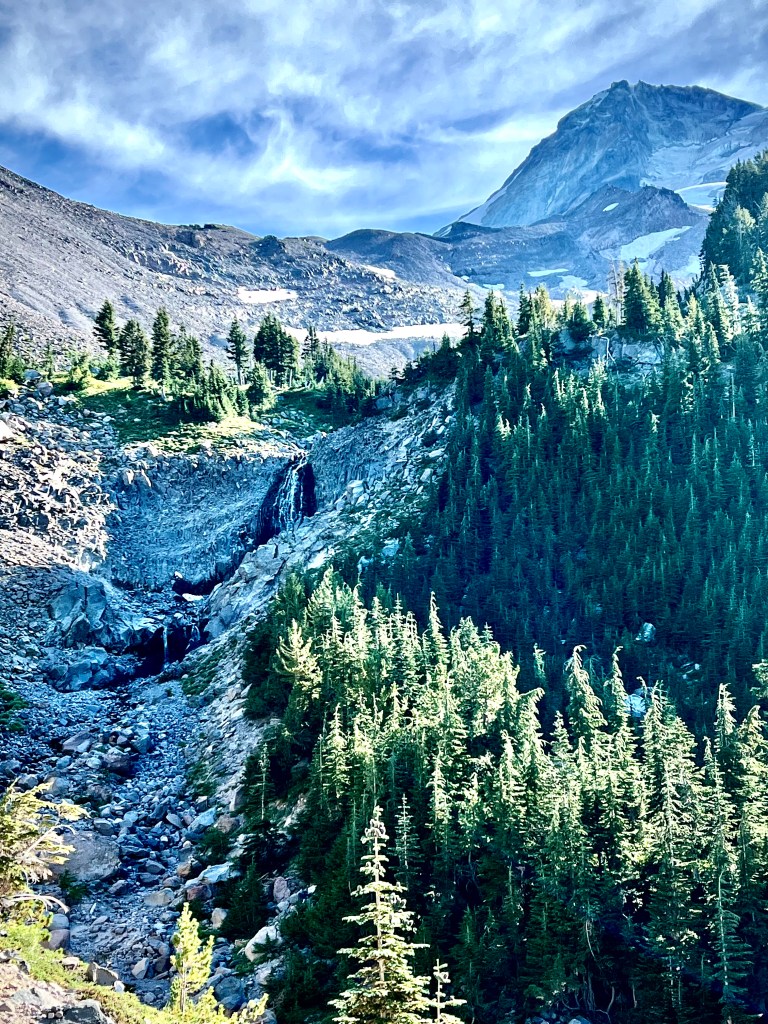 This day brought beautiful scenes of the top of Mount Hood peaking through the forests. There were more water crossings and lots of elevation gain however, this portion was much more of a descent, in fact the elevation lost was more than double.