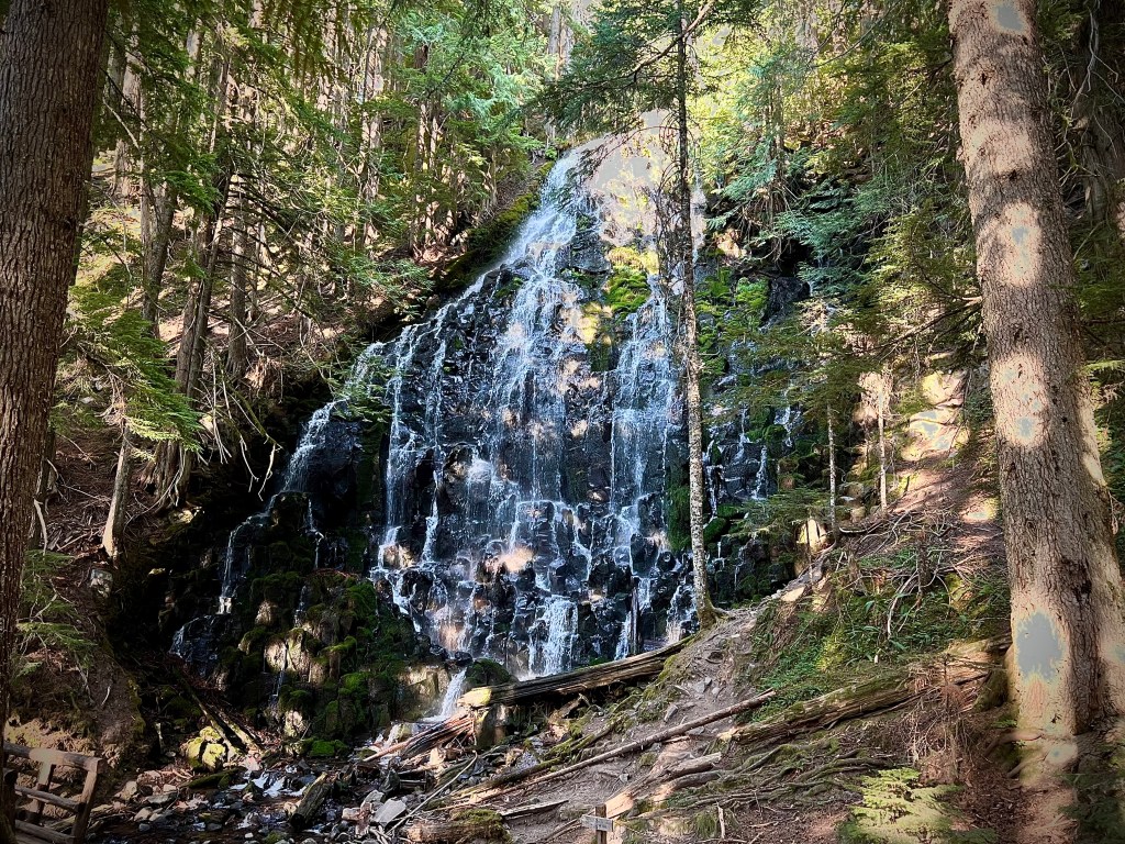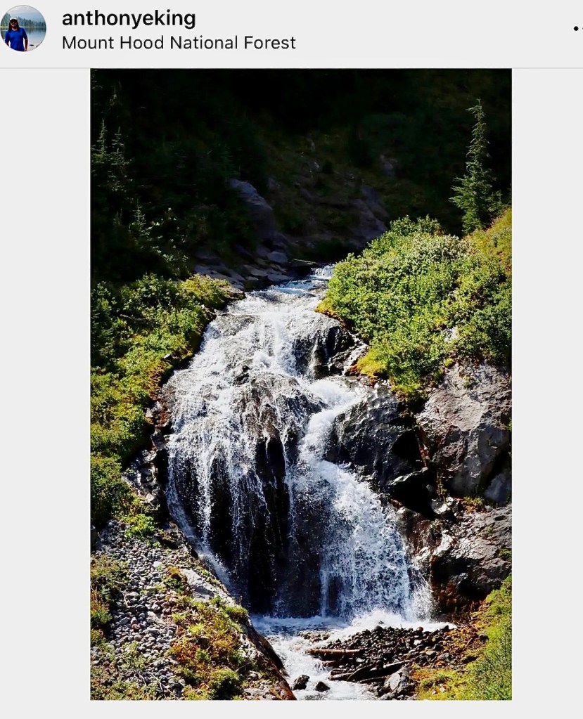 One of the special stops of this trek, around Mount Hood, is spectacular Romona Falls. Pictures and even the video don’t really capture it’s intoxicating enchantment. The lighting in the late afternoon was too bright for my pictures to be what I wanted, but I promise that the ones I took the following morning were better. I will save those for my Timberline Day 4 post. Hopefully you will feel an inkling of what quickly put me at ease enough that I forget my tired legs and blistered feet. In the mean time I borrowed a pic from Instagrammer Traci Wilgus for my cover shot. It was heavenly to drift off to dream land, in a such a dream land, to the sound of tumbling cascades of water.