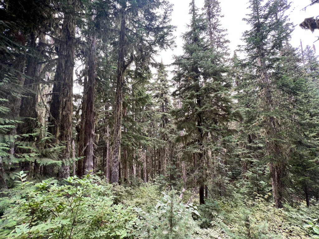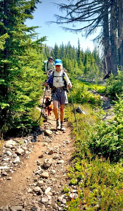 It would be a long hard day with the elevation gain being almost double that of any of the other days. There would be a long slog out of windy, dusty, canyons. We would experience more water crossings, one of which I decided that my best bet across the Zig Zag River was to do the standing broad jump from a rock to the shore with my heavy pack- and hooray, I stayed dry! There was more smoke in the sky from the nearby wildfires. But there were thick green forests to enjoy and handfuls of huckleberries to consume.