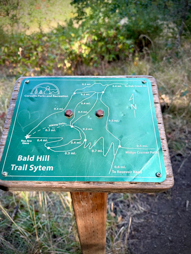 I stayed with my fraternity brother, Oregon hiking buddy and good friend Bruce Petersen. Being hikers we of course needed to fit in at least a little hike. Bruce introduced me to his local Corvallis hike in the Bald Hill Trail System.