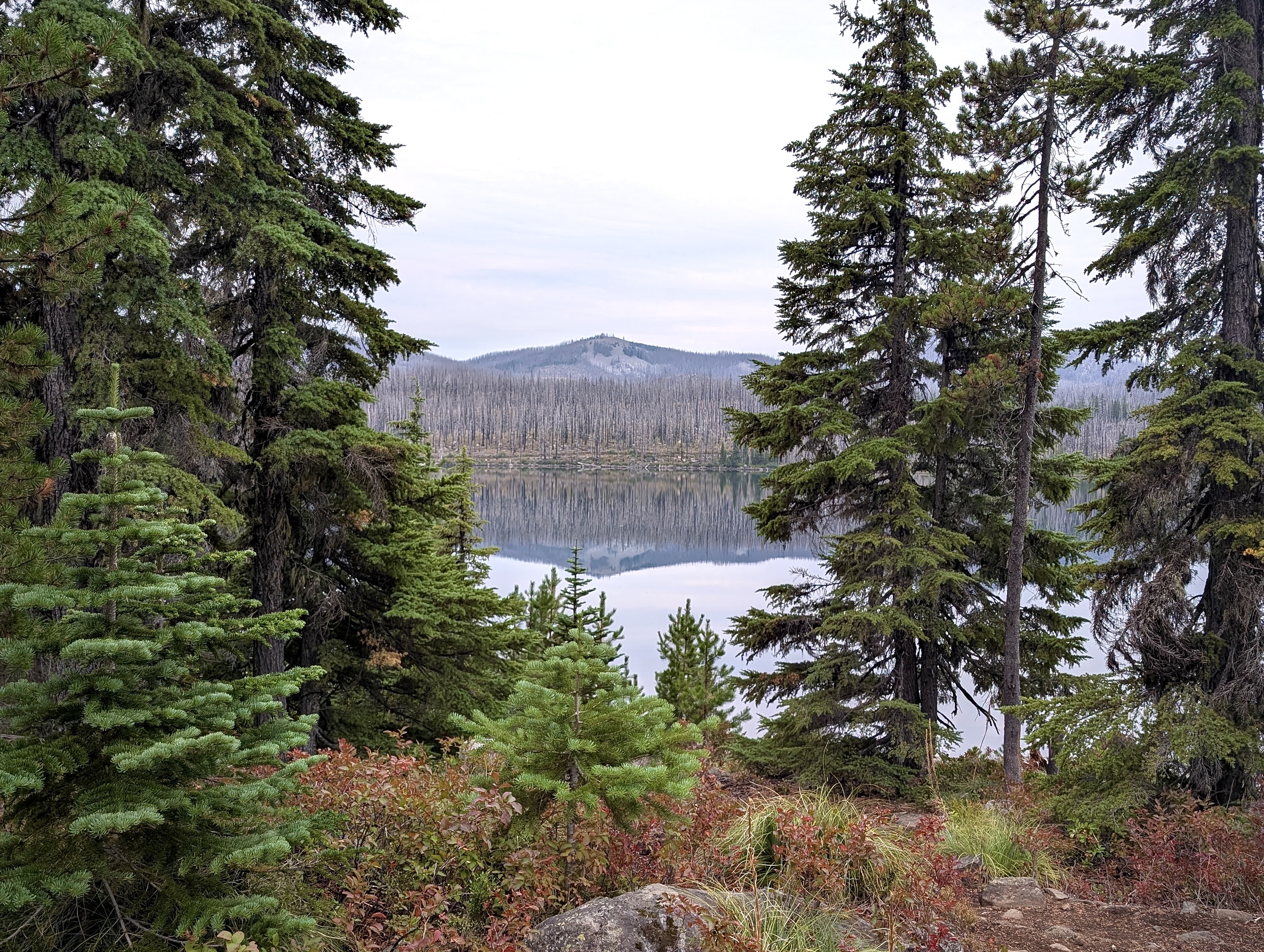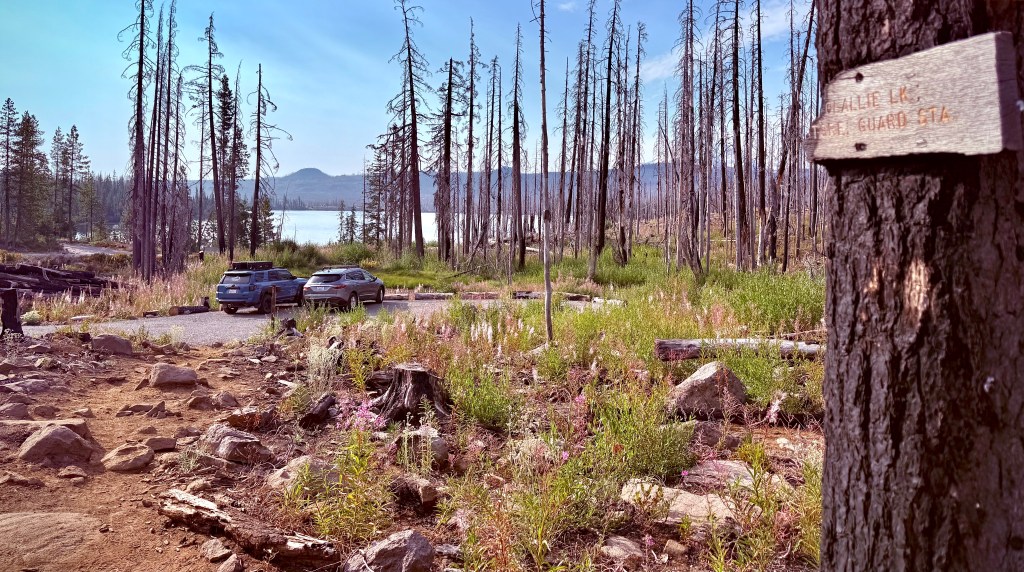 I was worrying that perhaps this road would get worse. I caught up to a couple 4 wheel trucks, whom were having a jarring experience on the rocky portion of the trail. They waved me ahead as I had much better suspension and my rig was made for this stuff. I asked them about getting to Olallie Lake and they said that this was the back way. I was thankful for the information and that I was on track because there is no cell service in the Wilderness. After a long and sometimes arduous trek I arrived at Olallie Lake. It also was completely burned, at least the side of the lake that I arrived at first. Firefighters must have made a stand against the Lionshead Fire of 2020 at this lake because the other side that had the Olallie Lake Resort, (I would not call it a resort, lol…), was fine.