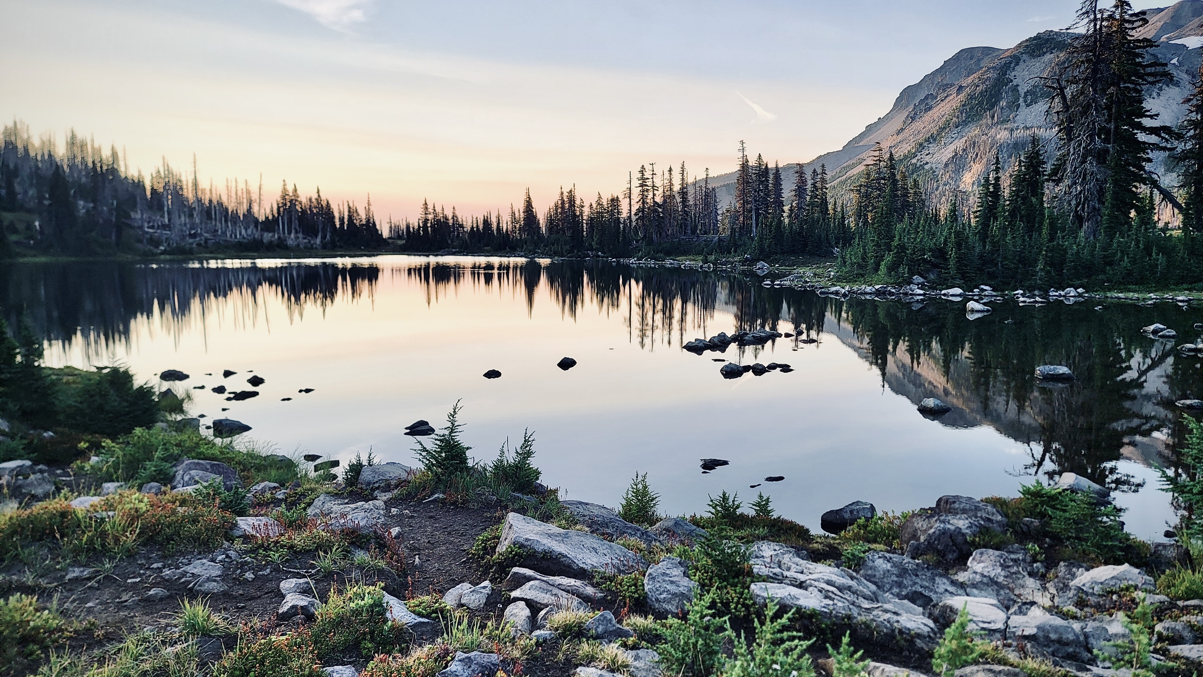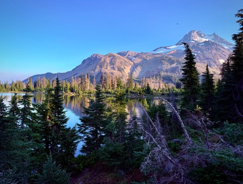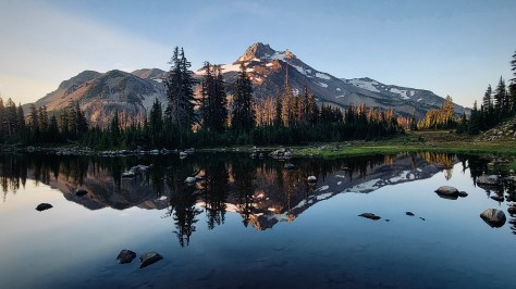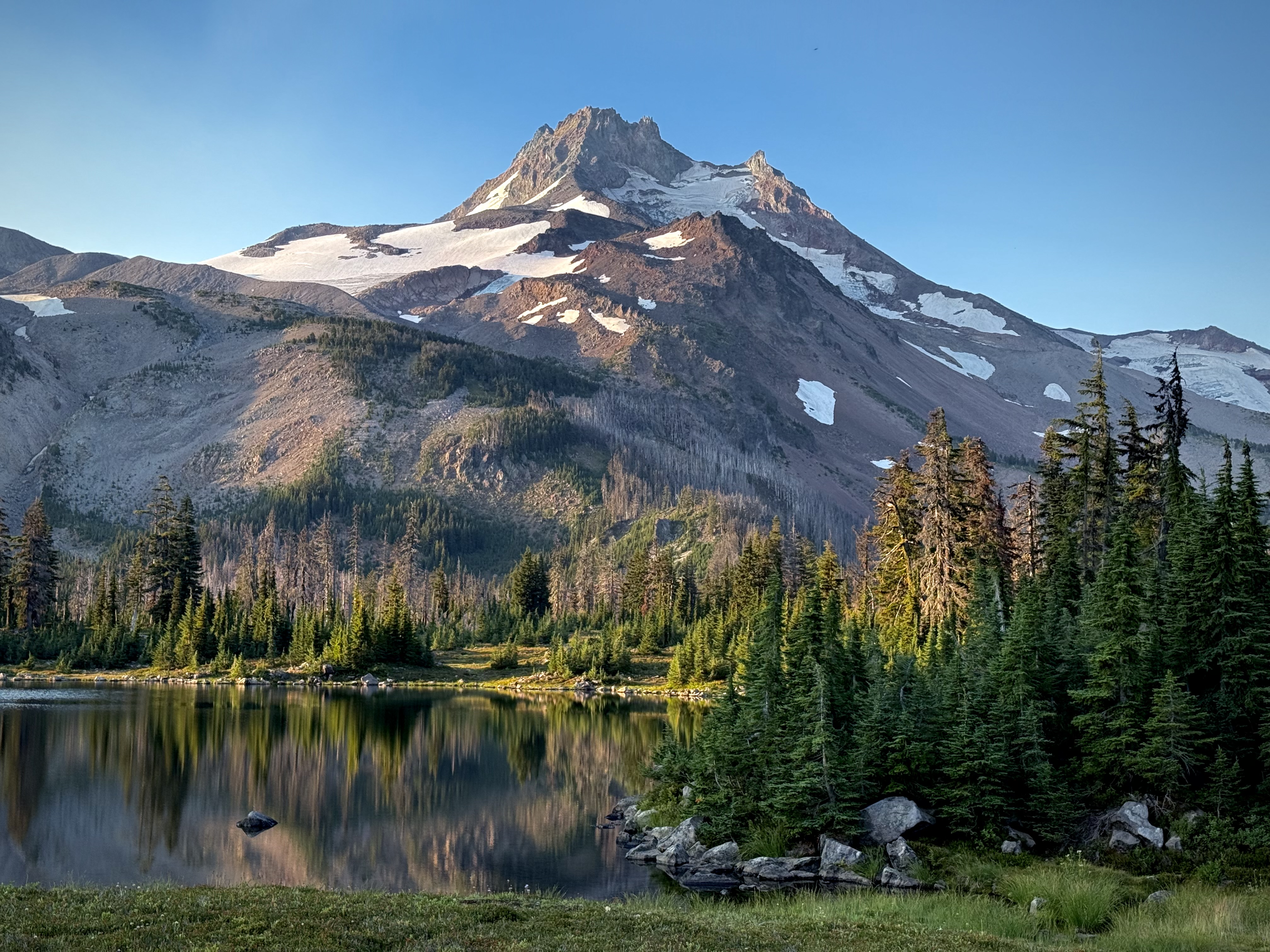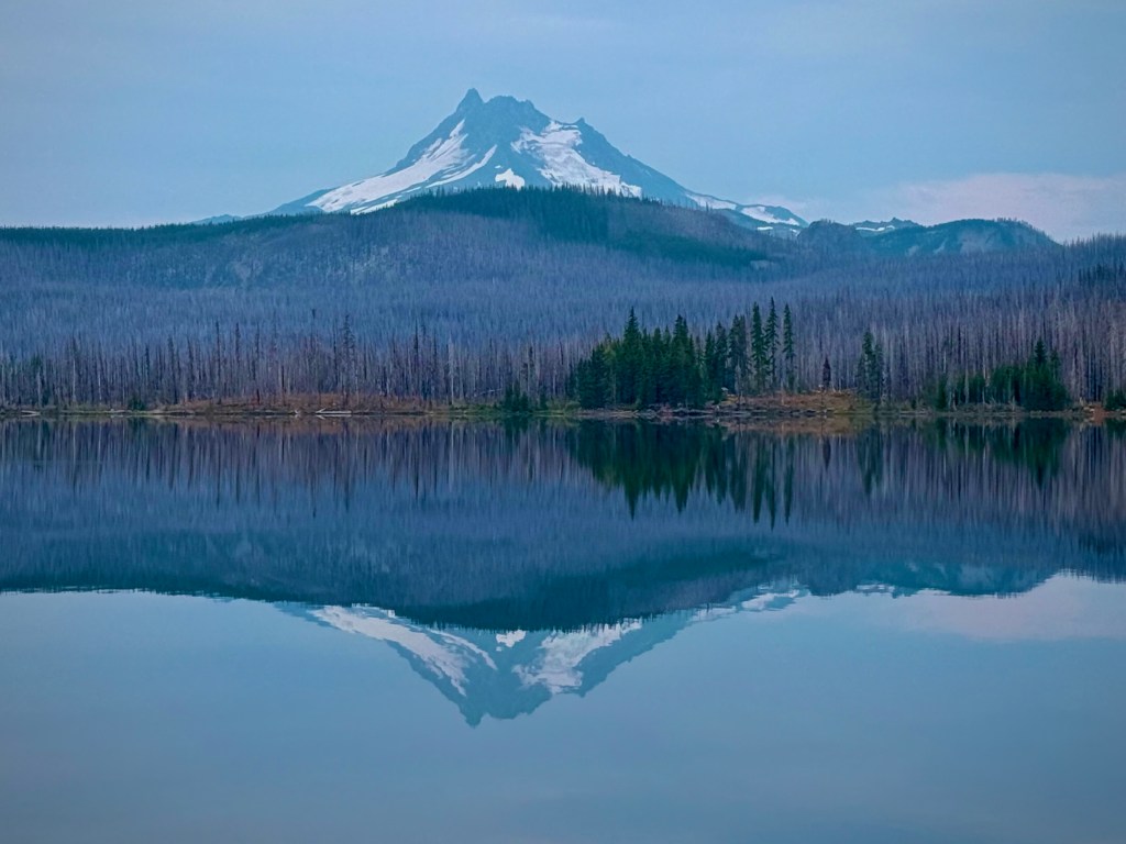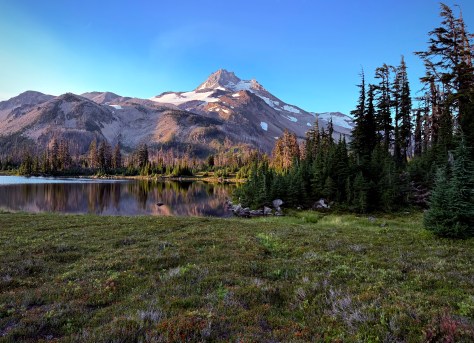 The glaciers on the mountain pick up the soft light of early morning… the still waters of the alpine lake reflecting the regal presence of Mount Jefferson… this place of calm framed by towering firs is a quiet reminder to appreciate the richness of the moment.