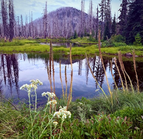 Anthony, Katie, Peggy, Dale, and I sincerely appreciate you taking the time to be ‘Pursing Balance Through Adventure’ with us in the MOUNT JEFFERSON WILDERNESS. One of the most beautiful and at the same time one of the saddest places to be. Immense natural beauty coupled with massive wildfire destruction and ugliness. The huge thunderstorm passed and we awoke to the dawning of a new day in a place so beautiful it was almost unimaginable. The mountain called to us, captivated us. Colossal, phenomenal, outstanding all seem pale as descriptive words to recount what we experienced. After we moved through the incredible area known as Mount Jefferson Park it wasn’t long before we were back to scarred land. It was more difficult to withstand on this day because unlike the day before where at least we had some refuge in sections of forest untouched by the devastation, it was just relentless on this day. As far as the eye could see what was once remarkable was no more. This was not the Balance that I was seeking where beauty was balanced with ugly, good was balanced with evil, but this was the way… Natures way, lightning caused the wildfire that wiped out virgin forest, now it must literally rise from the ashes. It’s natures way of renewal, but it is brutal. Once we closed in on Pamelia Lake, our destination for the night, we were back to forest big beautiful healthy forest. Good with the Bad… There is much more to share of our Mount Jefferson Wilderness Adventure. (Here is Day 3) Stay with us for more mountain trekking all you have to do is: LIKE, COMMENT, FOLLOW and SHARE.  Don’t forget to visit my Online SHOP APPAREL for top quality adventure wear that carries the mantra, the banner, the message, the logo: ‘Pursuing Balance Through Adventure’. Profound Experiences in Nature is what we seek to Balance home/work life with peace and harmony. The menu showcases the many locations that PBTA travels. Each location is a separate website and thus needs to be FOLLOWED independently.