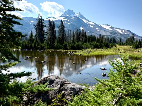 The lake and the mountain were superb. After everyone arrived we had a snack break and then hit the trail through the beautiful Mt. Jefferson Park, which was just incredible.
