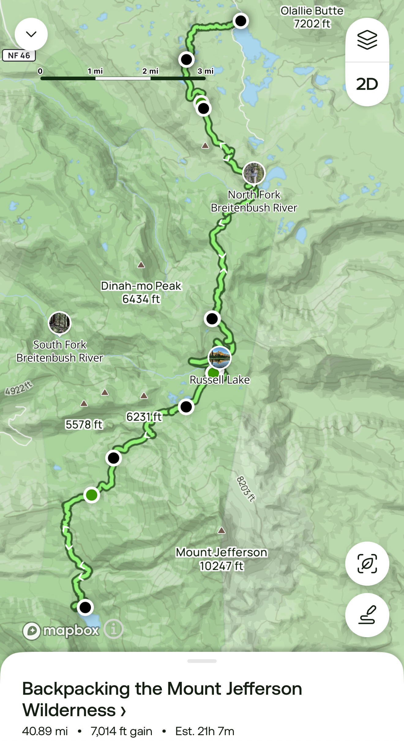 41 miles, 7,014 elevation gain, 21 hours moving time, rated Moderate to Hard