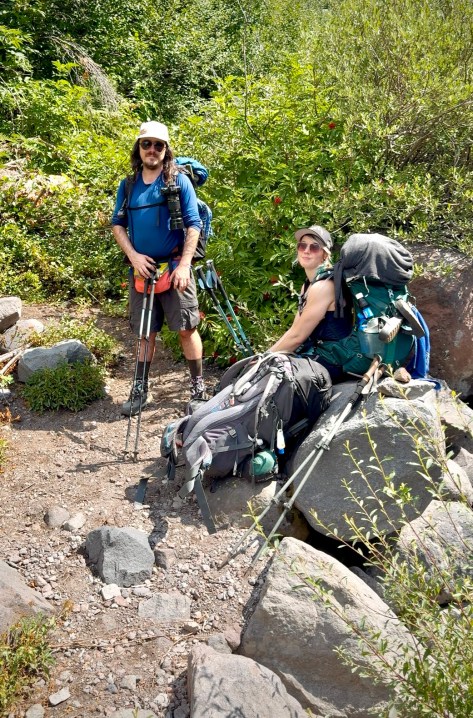 I marched uphill through the wildfire devastation late into the afternoon and I was starting to wonder where was Peggy and Dale? They certainly should have passed me by now. I caught up to Anthony and Katie who were taking a snack break and voiced my concern and Anthony always positive said, “I am sure they are fine”. As the time passed I grew more and more worried. I happened to find a point with a little cell service and contacted their son Nick, who was their safety contact.