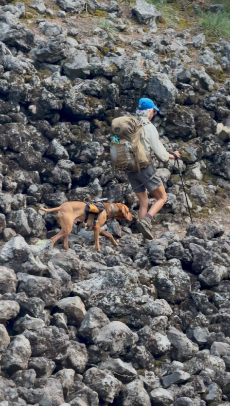 The trek continued on through the scarred apocalyptic land of ruin. As usual our band of merry backpackers spread out due to age, fitness level, quest for solitude and so on. Anthony in the lead getting his Zen on, the youngster of the group Katie doing her best to stay in his same zip code. Peggy and Dale hiked with me for a good part of the day, but I finally told them to move along as I wanted to go at my own pace.