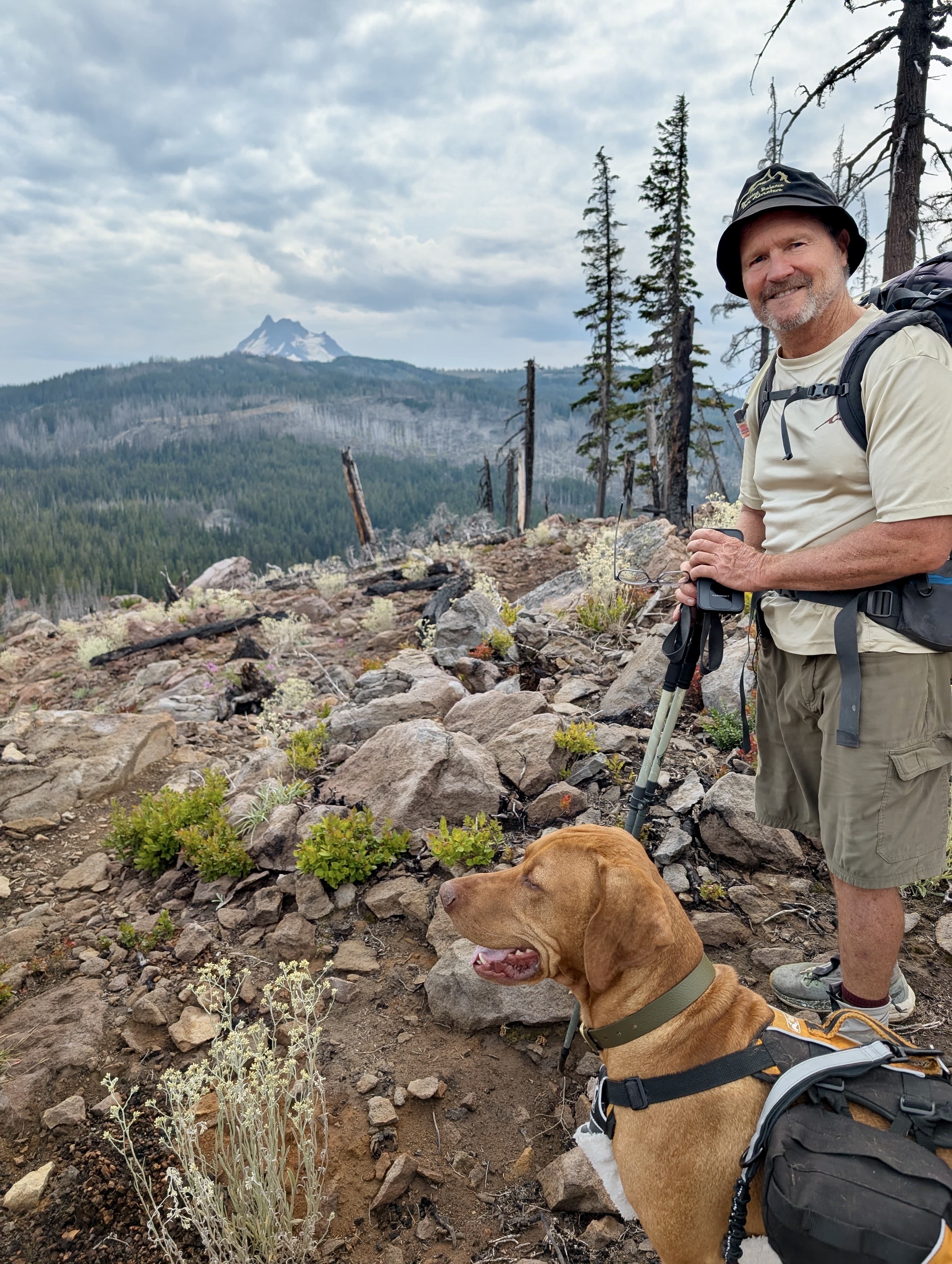 Although this was my most aggressive backpacking trip as far as days out, distance and elevation gain, I was with a fellow adventurer so at least I was not alone.  The other person on the trek, a Through Hiker who has hiked over 800 miles on the AZ Trail this year and a year or so ago completed the PCT, is a hiking friend from LA.  Anthony King a Bar Tender and Photographer flew in for the event and I picked him up at the Portland Airport. I have backpacked with Anthony once before. He is much younger than I so I was a little apprehensive about hiking with him, not wanting to hold him up.  Turns out he hikes at his own pace.  You either keep up or fall behind, your choice.  So the way that we handled it was we hiked together some of the time, but generally we enjoyed oneness with the mountain.  We met up for some of the breaks, as Anthony would take an extended break to allow me to catch up and I would have an abbreviated stop.