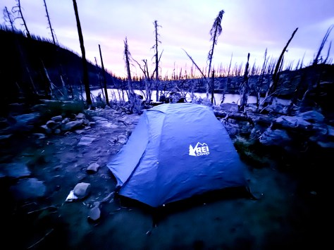 I scouted a couple spots to camp and then decided to take a load off and just enjoy a snack and the remarkable vision before me. It wasn’t long before Anthony and Katie arrived and we started setting up camp. I let them know that I had heard that Peggy and Dale were okay.