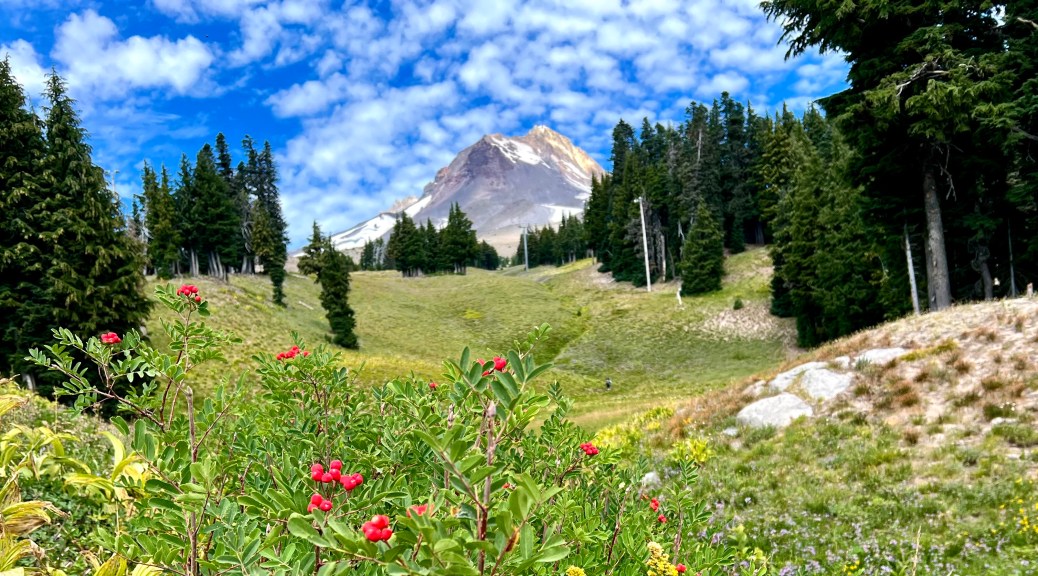 Wednesday, Sept 7th, at 8AM we set out past Timberline Lodge to circumnavigate Oregon’s magnificent Mt Hood counterclockwise on the amazing Timberline Trail under mostly sunny skies. The days were to be mild and the nights just a little chilly so really tremendous conditions to take on one of the best backpacking trips in America.  Meandering through fields of wildflowers, in and out of wooded areas, spectacular views of Mt Jefferson, passed a couple small crossings of rushing water and waterfalls was how we spent the day.  Hoping across rocks is a little tricky with a heavy pack, but we managed to stay dry.  Now we climb… 10 miles and over 2,800’ elevation gain much of it up loose, steep, sandy, and crumbly material known as scree. We bedded down past Lamberson Butte near an old shelter with unreal views of the peak of Mt Hood right out my tent flap.