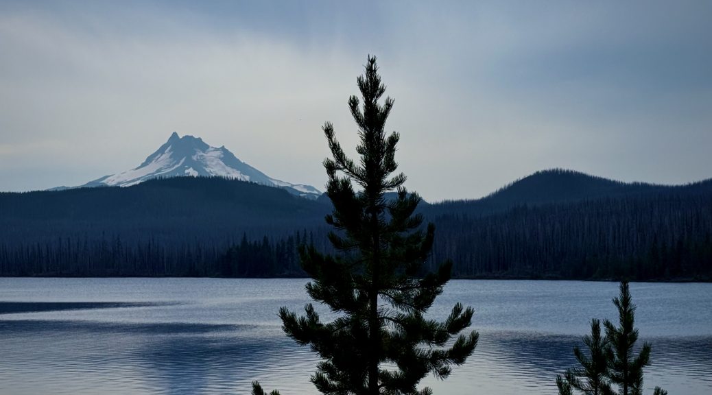 It was a wonderful and spacious campsite. Beautiful big fir trees on a little point on the quiet tranquil lake with a splendid view of Mount Jefferson, and away from others… perfect.
