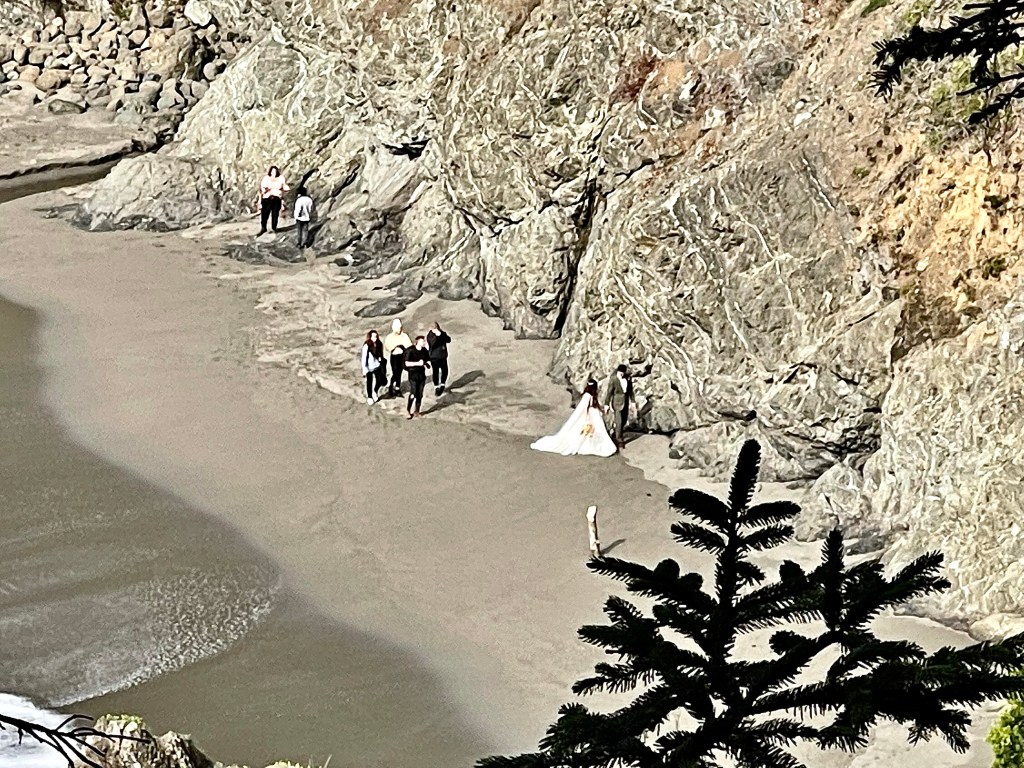 Every so often, through a peekaboo window that the woodland would open up, I could spy Peggy, Dale and their dog Jimi making their way to the foothill of our climb.