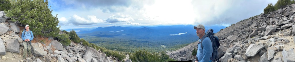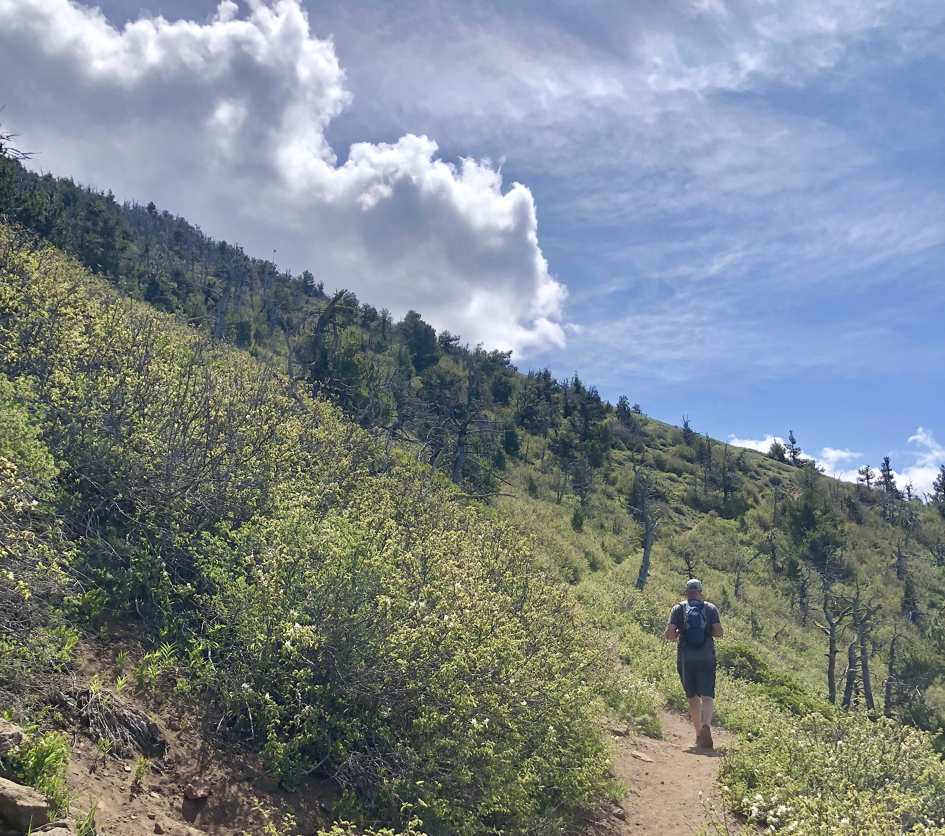 I marched uphill through the wildfire devastation late into the afternoon and I was starting to wonder where was Peggy and Dale? They certainly should have passed me by now. I caught up to Anthony and Katie who were taking a snack break and voiced my concern and Anthony always positive said, “I am sure they are fine”. As the time passed I grew more and more worried. I happened to find a point with a little cell service and contacted their son Nick, who was their safety contact.