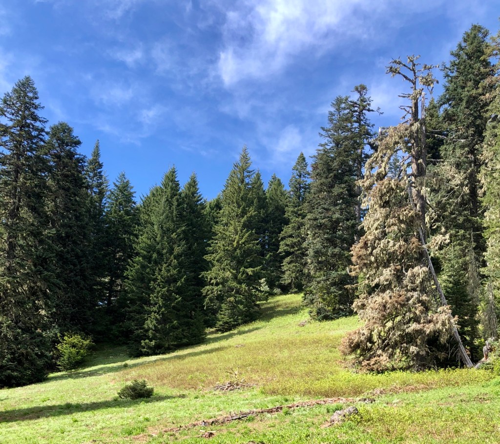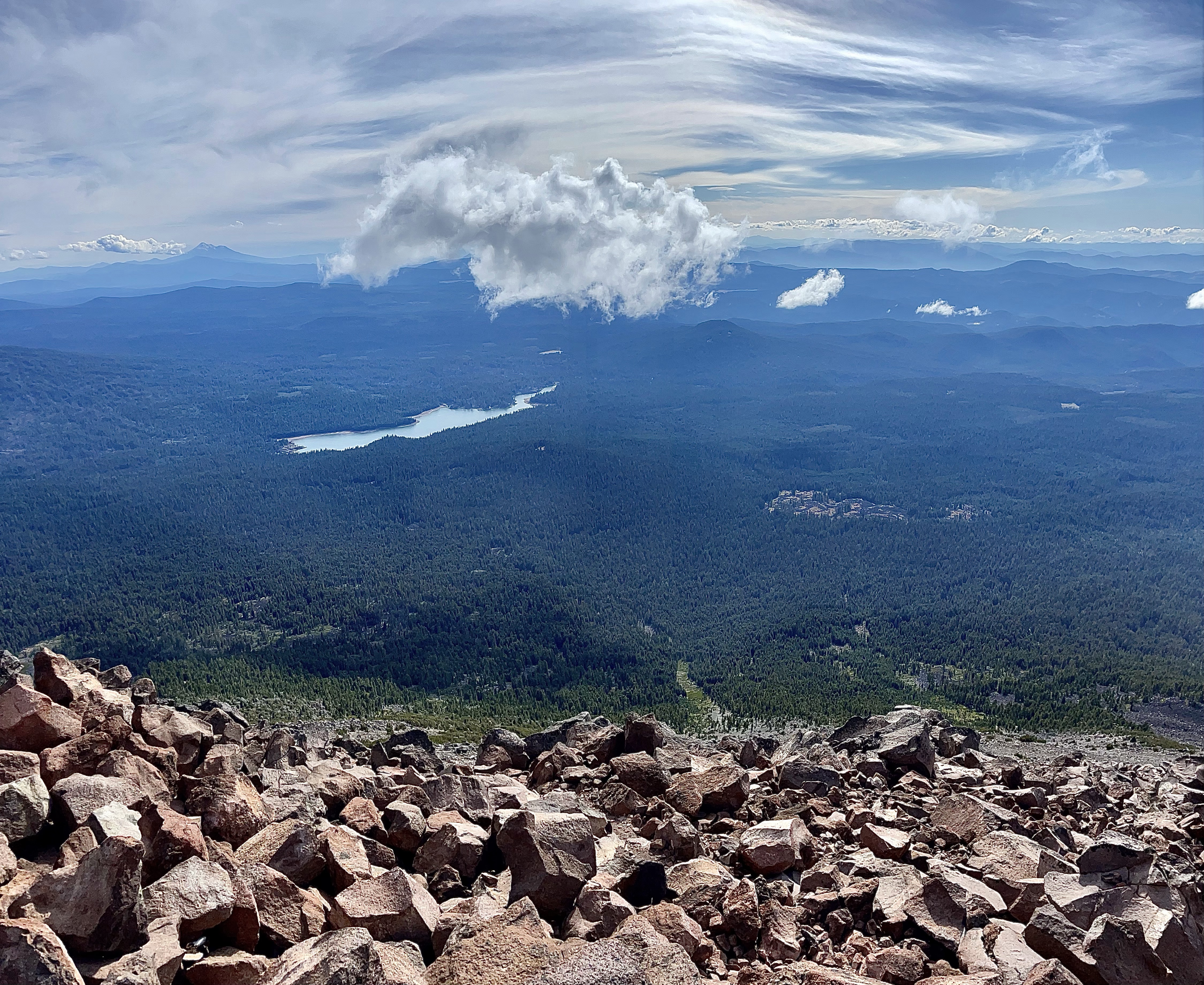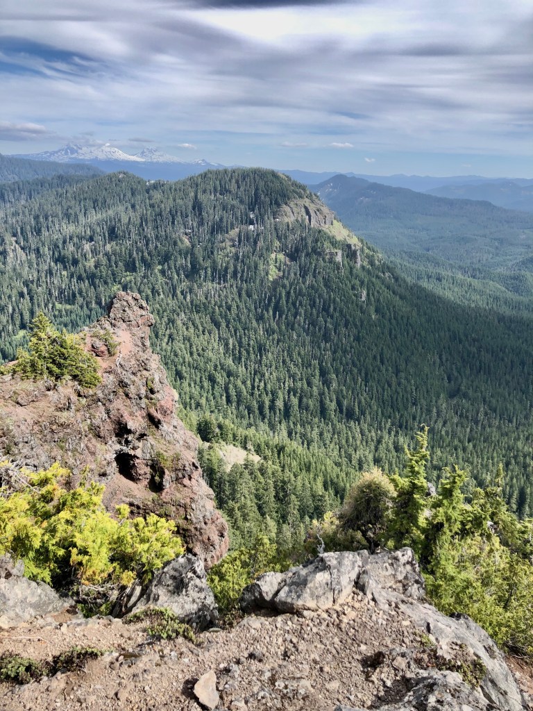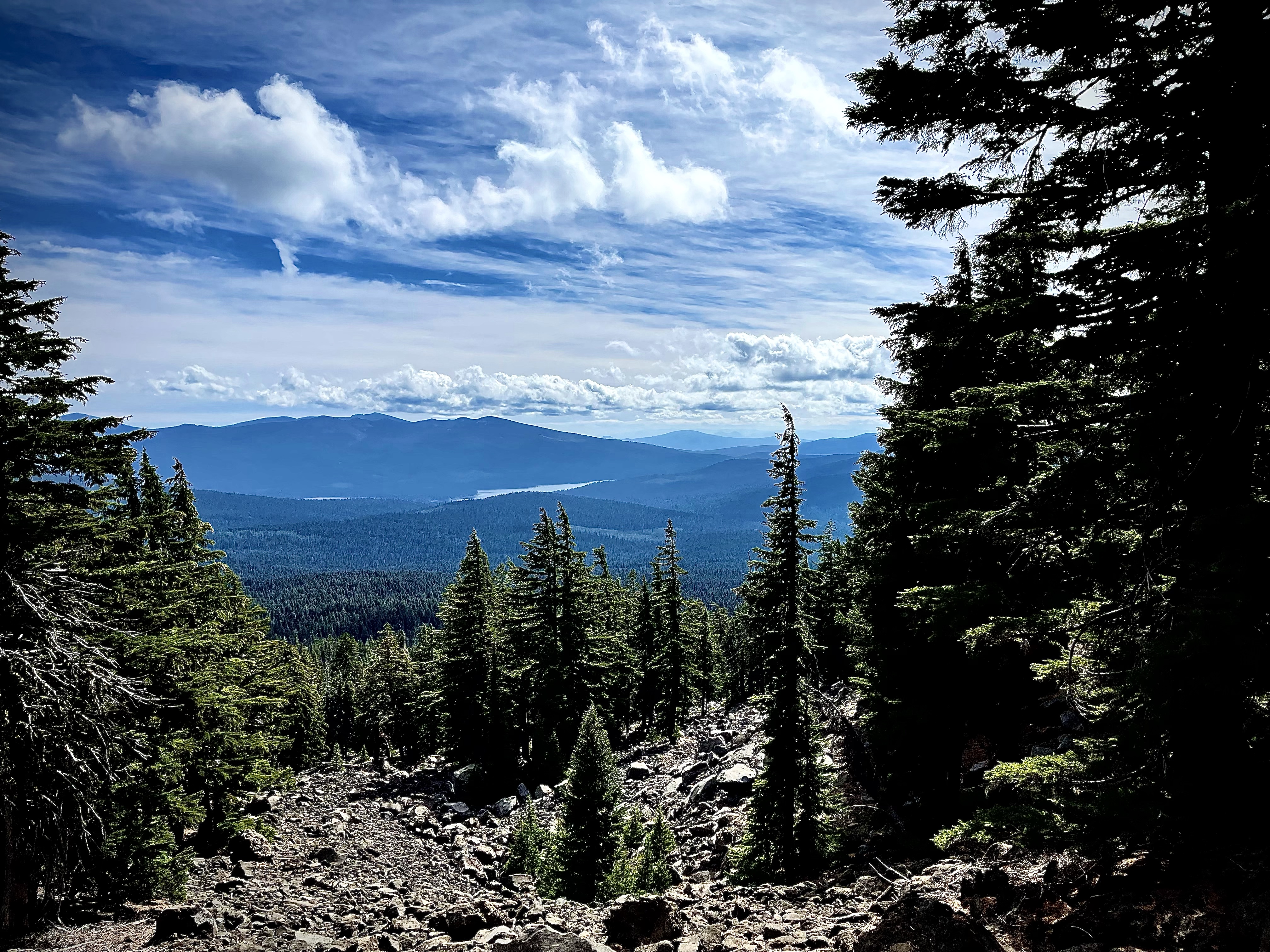 The alluring perfect forest ran out as we wrapped around the mountain. Back to the burn scar, ugh, but I did find some bushes filled with huckleberries and took a nice long break harvesting as many of the delicious tidbits for my breakfast snack as I could muster.