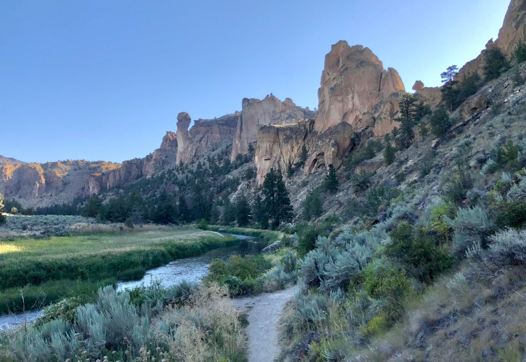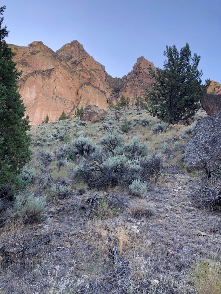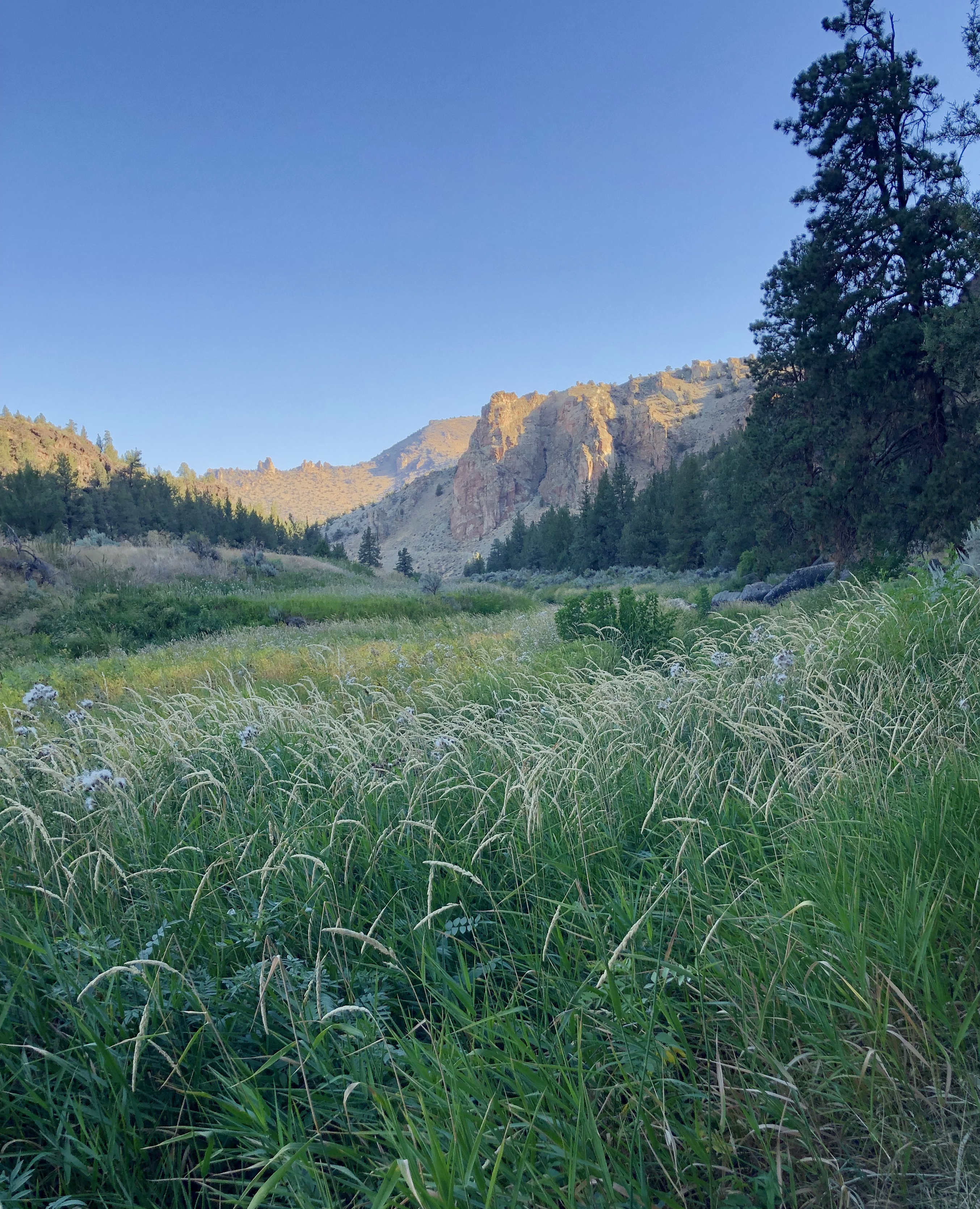 It would be a long hard day with the elevation gain being almost double that of any of the other days. There would be a long slog out of windy, dusty, canyons. We would experience more water crossings, one of which I decided that my best bet across the Zig Zag River was to do the standing broad jump from a rock to the shore with my heavy pack- and hooray, I stayed dry! There was more smoke in the sky from the nearby wildfires. But there were thick green forests to enjoy and handfuls of huckleberries to consume.