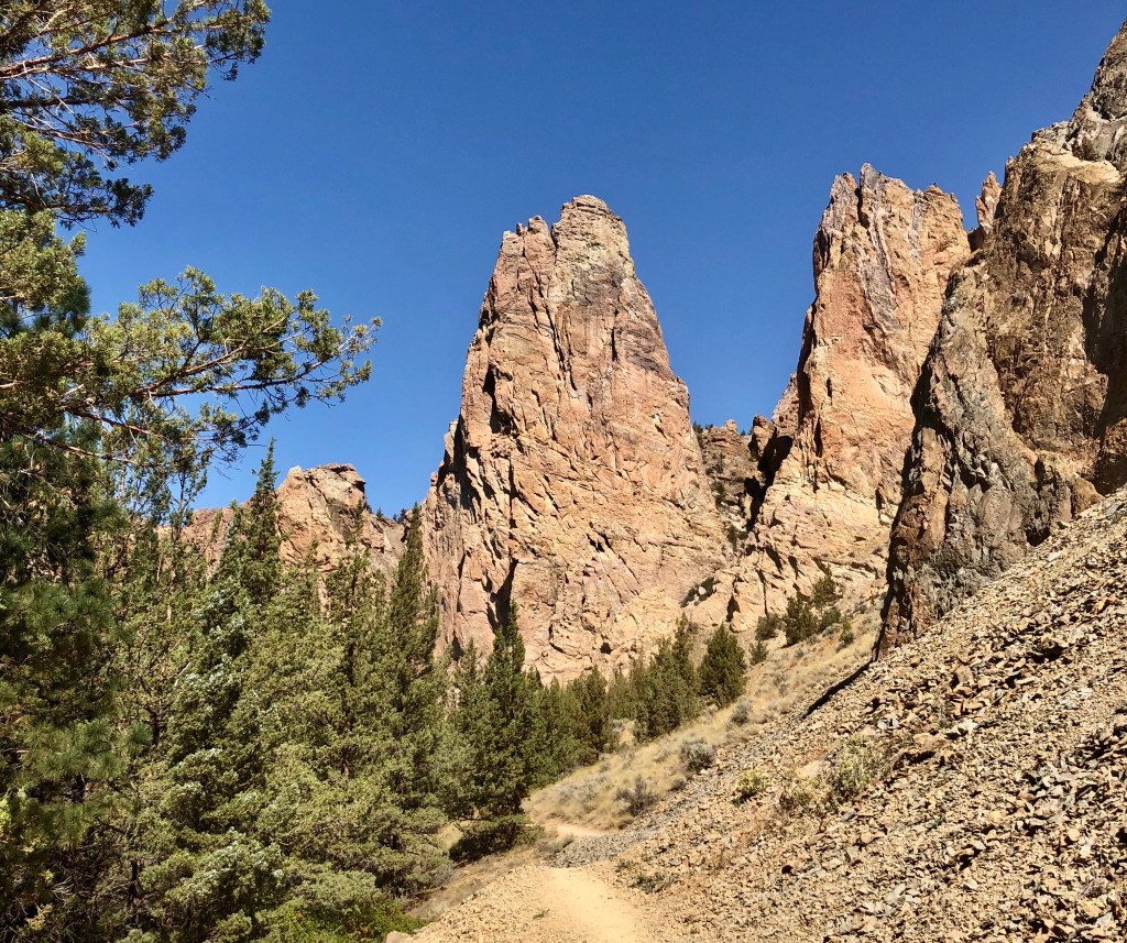We maneuvered through a portion of forest with downed timber that we had to clamber over, under or around, and up a steep switch back trail. One spot seemed particularly treacherous with massive logs precariously perched above being held in place by saplings. It was quite unnerving to come around the bend and find trail all but wiped out by such a tree coming down the mountainside.